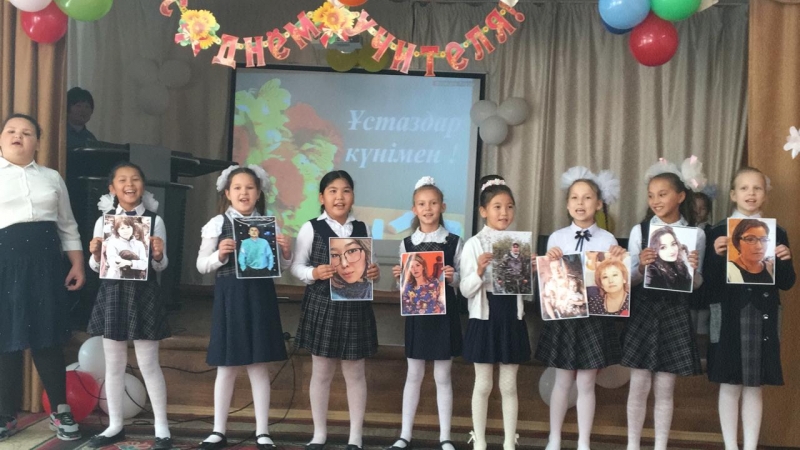 4 октября в нашей школе прошел праздник «День Учителя». С самого утра под громкие аплодисменты встречали наших учителей в фойе школы, никто из учителей не остался без внимания... До начала уроков всех учителей пригласили на концерт в актовый зал. На праздник были приглашены наши учителя-ветераны, отдавшие школе много лет жизни. Их лица светились от счастья, что вновь они слышат звонкие детские голоса, школьный шум, видят труд учителей, пришедших на смену. Учащиеся подготовили интересную концертную программу. Любой праздник, а особенно такой, не мог начаться без теплого поздравления директора школы Батановой Ботагоз Кенесовны. Обилие грамот, которыми были награждены учителя в этот день, напоминало красивый листопад. Каждый класс подготовил свой номер. Описать все номера невозможно, настолько они неожиданны и хорошо. Весь концерт прошел на одном дыхание, никто не заметил, что минутная стрелка часов сделала полтора оборота. Улыбки, радость единения учеников и учителей царили в зале.